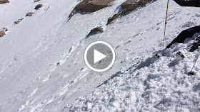 We stashed our skis and some extra water at the base of the Trough. As it turned out, skiing the Trough would have been fine for Charlie, but probably a bit tough for me. But, as you'll see, our method of descent was probably even faster, maybe more fun, and a lot lighter.