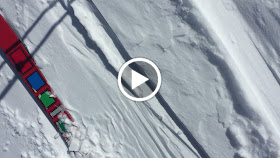 We picked up our poles and snowshoes as we descended, but just continued with crampons and ice axe all the way down to camp, getting there at 1:15 p.m. The storm was going nicely now and all our gear was covered in snow and the wind made packing up more difficult. We went straight to the task of breaking down camp, which is time-consuming, but we had everything packed up and on our backs and the sled by 2:30 p.m. We headed out. The tracks we followed on the way in were completely covered but we knew the route and once we got up the crux hill on the other side of Crater Lake we were on a clear trail. The sled tipped over a number of times and Derek handled it expertly each time. Careening down this trail on the very edge of control in my NNN boots with a big pack on my back and a heavy sled is quite a rush.
